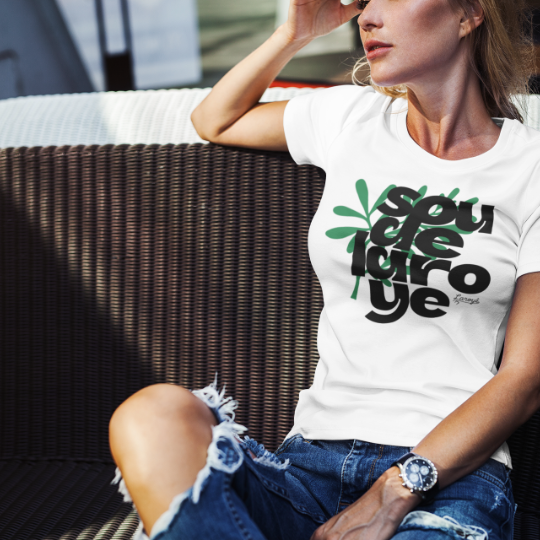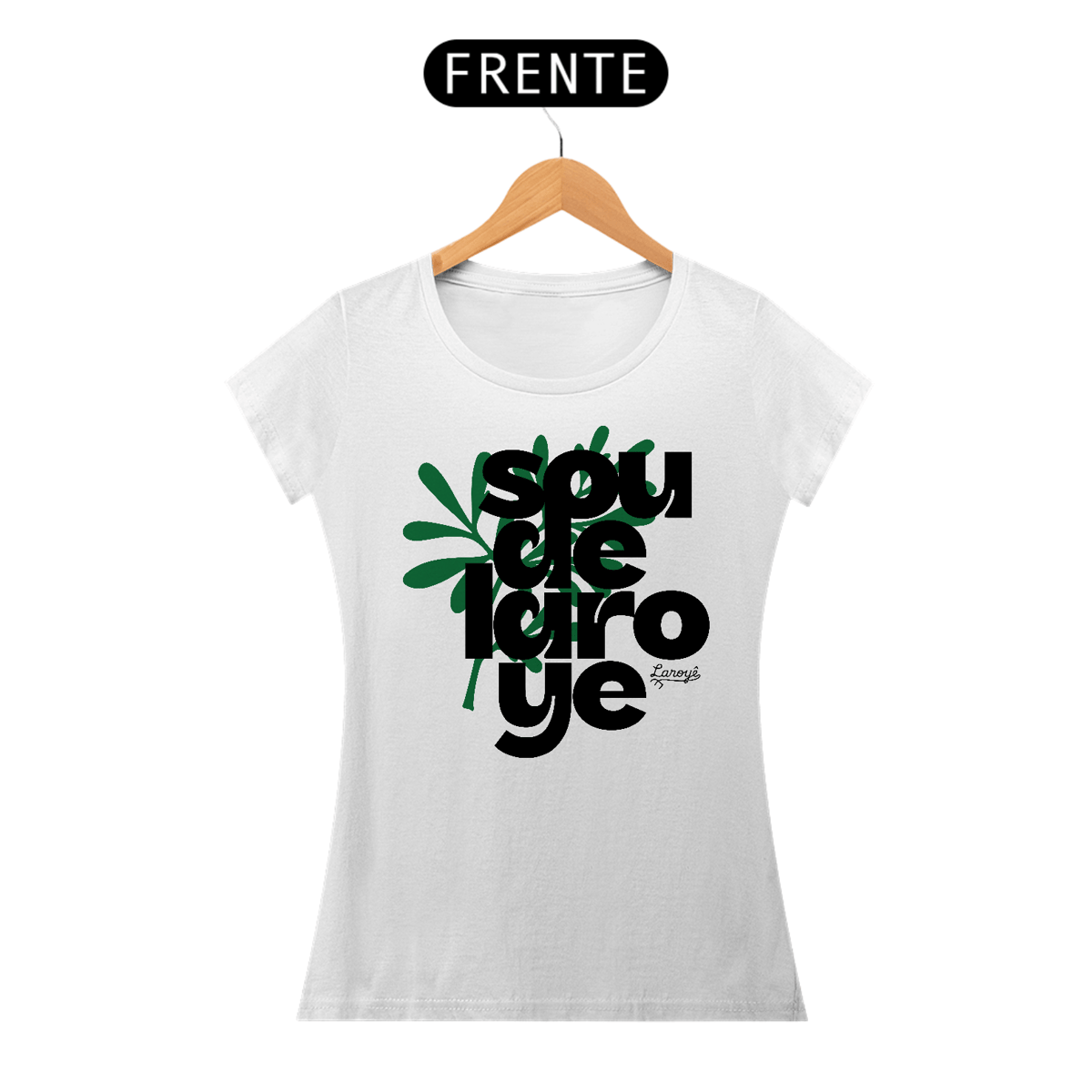 Vista-se com propósito e energia com a baby look Sou de Laroyê. Feita em tecido confortável de alta qualidade, essa peça é ideal para quem valoriza estilo e conexão espiritual. Na frente, uma impressão minimalista da marca celebra suas raízes, enquanto nas costas, uma arte impactante reverencia a arruda, a poderosa erva de limpeza e proteção das religiões de matriz africana.