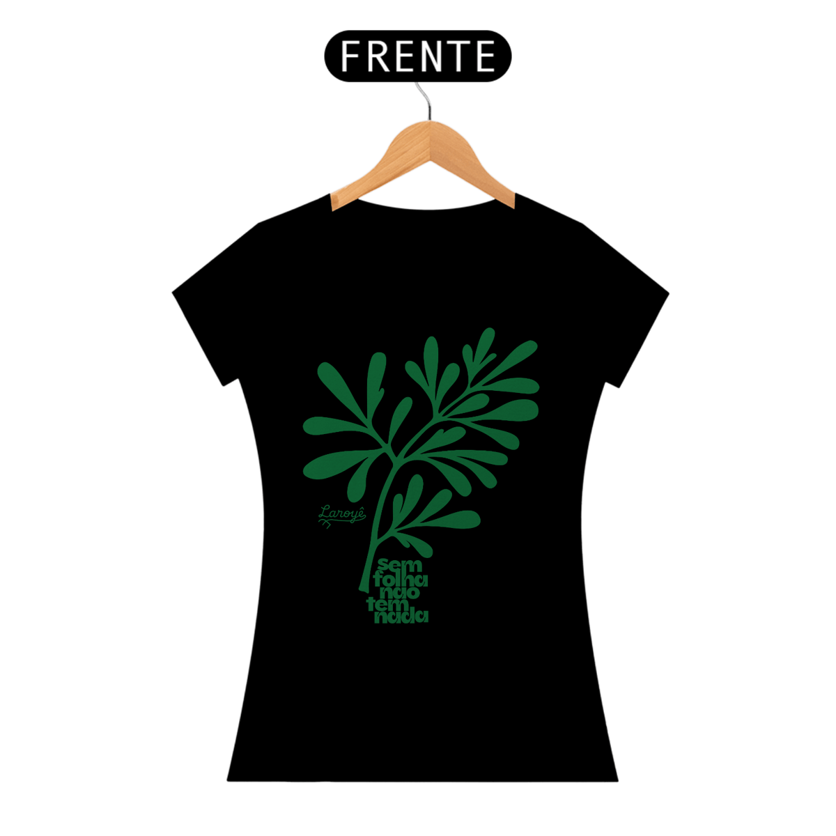 Carregue a força das raízes africanas com estilo e propósito com a baby look Use Laroyê. Confeccionada em tecido confortável e de alta qualidade, essa peça é mais do que uma roupa – é um manifesto de fé e ancestralidade. Na frente, a marca discreta reforça sua identidade. Nas costas, a frase poderosa "Sem Folha Não Tem Nada" ganha destaque, acompanhada por uma estampa moderna inspirada na arruda, a erva de proteção e purificação.