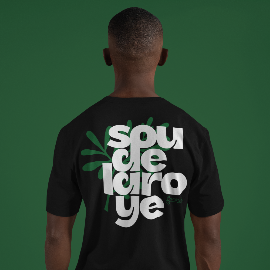 Vista-se com propósito e energia com a camiseta preta Sou de Laroyê. Feita em tecido confortável de alta qualidade, essa peça é ideal para quem valoriza estilo e conexão espiritual. Na frente, uma impressão minimalista da marca celebra suas raízes, enquanto nas costas, uma arte impactante reverencia a arruda, a poderosa erva de limpeza e proteção das religiões de matriz africana.