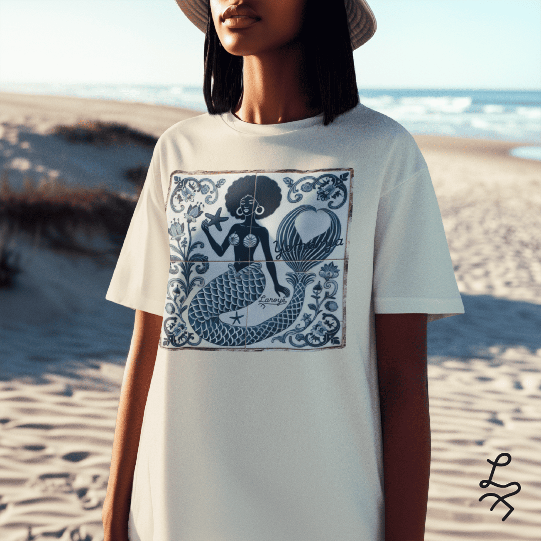 Com uma impressão imponente e vibrante na parte frontal, a estampa homenageia Yemanjá, a Rainha do Mar, destacando sua beleza, poder e conexão com nossas raízes afro-brasileiras. Ideal para usar em qualquer ocasião, especialmente no Dia de Yemanjá, 2 de fevereiro, para celebrar a energia e o amor da Mãe Preta do Mar.